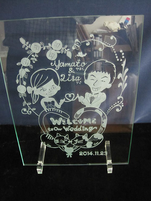 最近は自分の名前を彫ったマイグラスの注文が多いです。