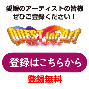 【QUEST for Art】は、文化・芸術・音楽の分野で『仕事をしている・仕事をしたい』愛媛県民のアーティストを紹介するサイトです。 愛媛県に住みながら、日本・世界で活躍できる人たちを世界に送り出したい想いで起ち上げました。また、愛媛県を文化・芸術・音楽の分野で日本でも有数の県になることを目指しています。 当サイトに登録していただけるアーティストを幅広く募集中です!(登録無料)