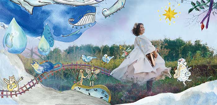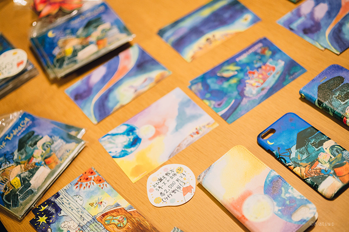シロツメクサとカエルの物語や、世界一の男と結婚しようと思っている蚊の話など、ユニークな切り口とその世界観を形にした、飛び出す絵本のような立体CDジャケットや、絵、動画などの作品は、クリエイター、女性やキッズにも人気が高い。